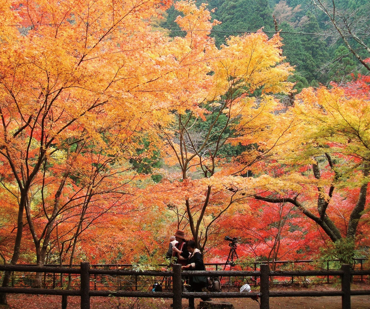 境内にあるイチョウは、年によっては同時に色づいたり、1本ずつ順番に色づいたり、趣のある紅葉を楽しむことができる。また、方丈庭園周辺にあるモミジの紅葉も同時に愛でることができ、趣のある紅葉を楽しみながら、一日を過ごすことができる。