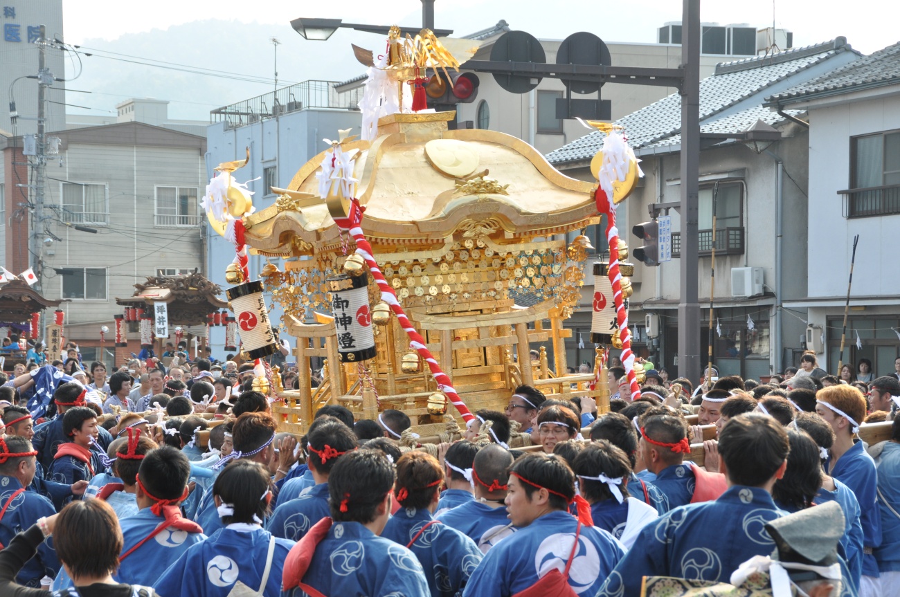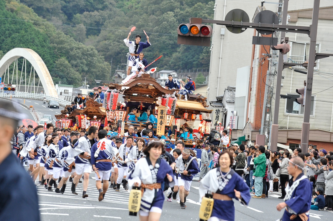 本まつりでは徳守神社御神輿が御巡幸を開始した後にだんじりが御神輿の後を追って巡行します。