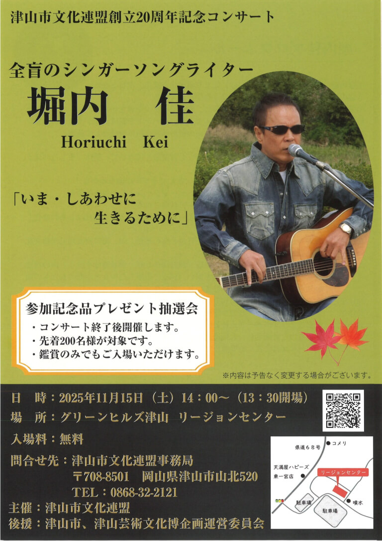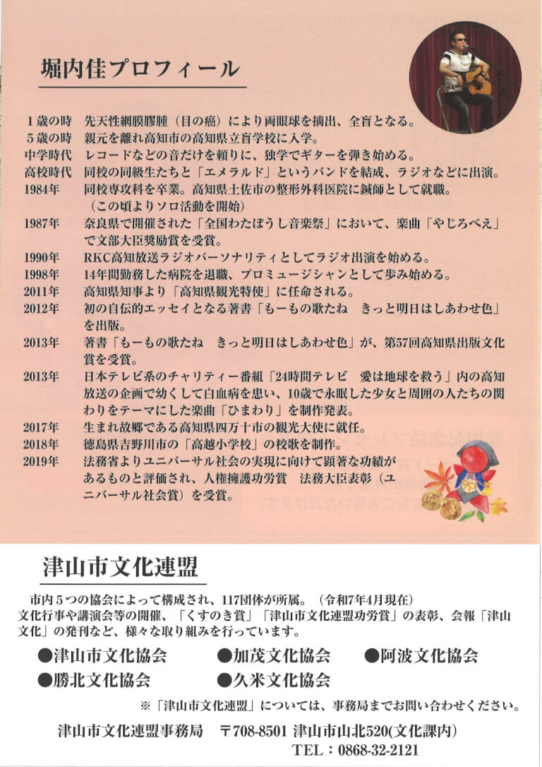| 3 | 津山市文化連盟創立20周年記念 堀内佳コンサート ★終了しました |