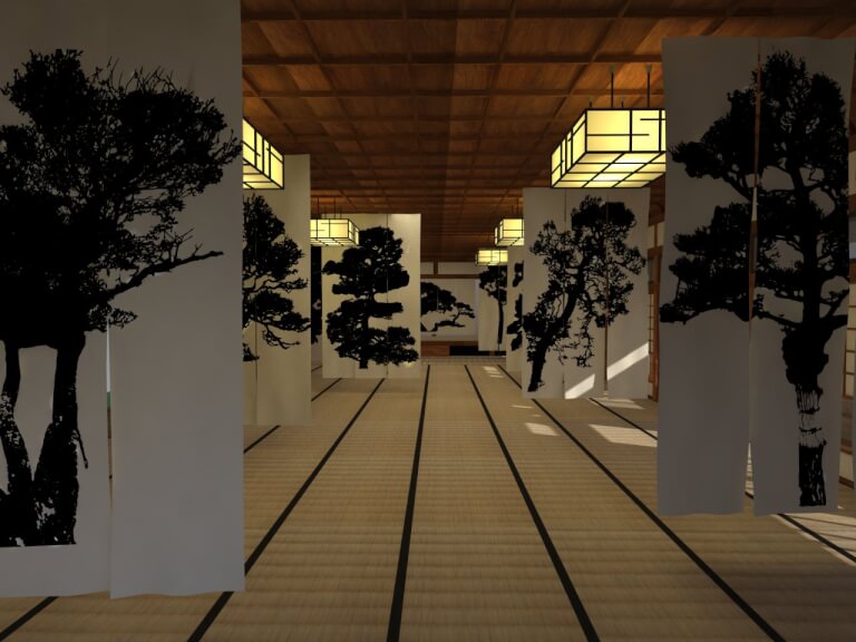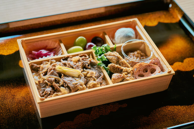 リクリット・ティラヴァニ氏が、真庭市勝山在住の染織家・加納容子氏による暖簾などを用い、衆楽園の迎賓館等の空間をプロデュースし、その特別な空間で「ハレノクニ弁当」を食べることができます。
