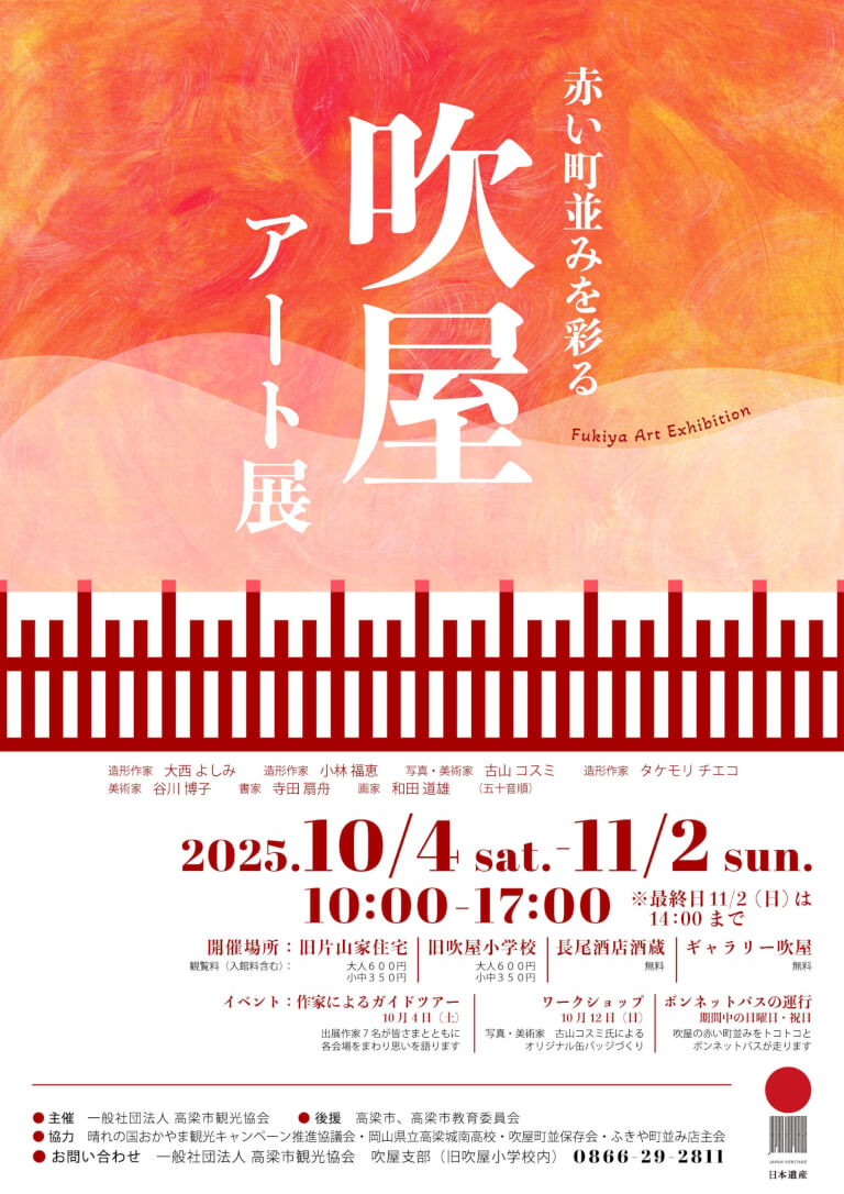 3 | 吹屋アート展 | 令和7年10月4日 | 令和7年11月2日 | 高梁市観光協会吹屋支HP チラシはこちらオモテ/ウラ |